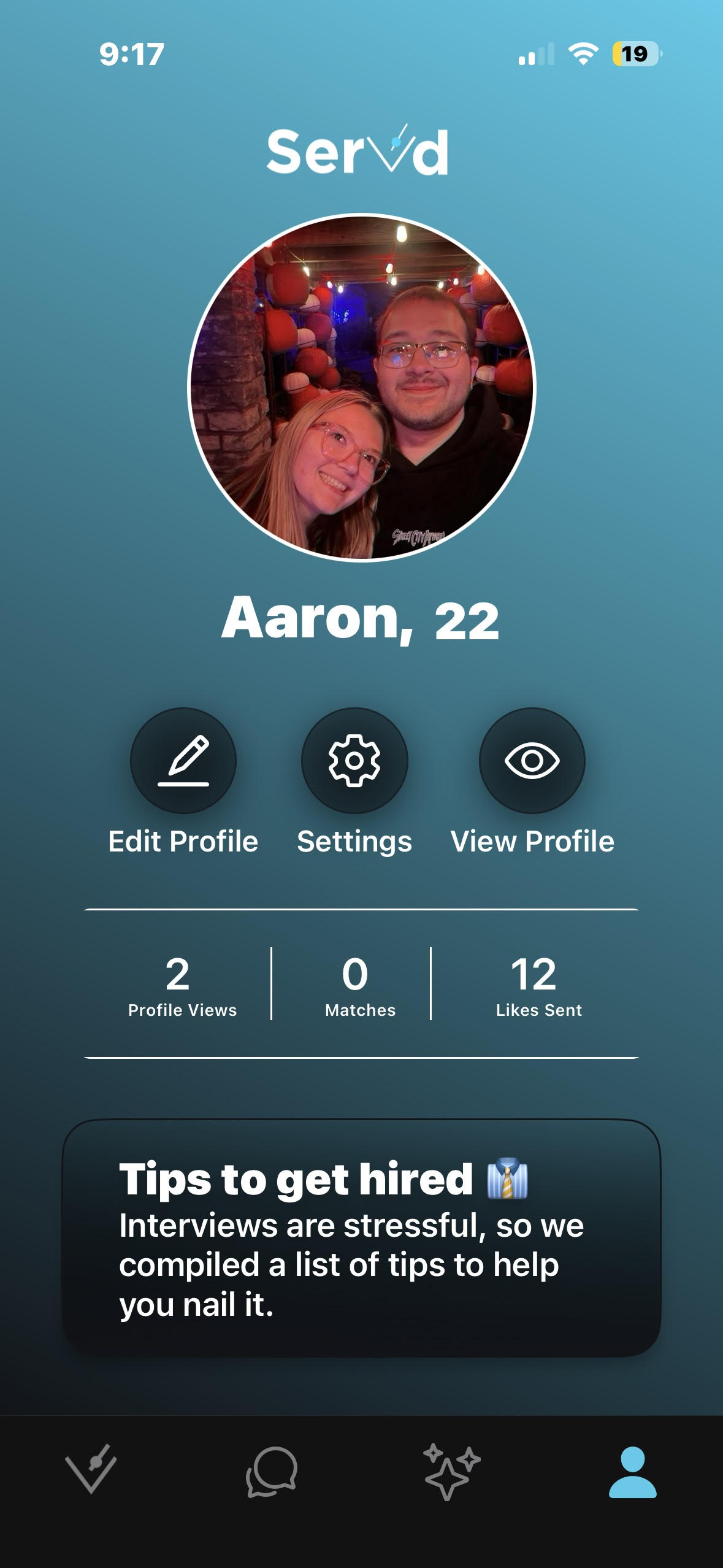 Ditch the resume. Build a profile, showcase your vibe, and match with the best bars, restaurants, and clubs in seconds.